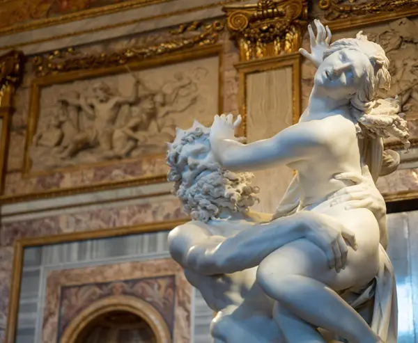 Ik blijf kijken. Het beeld is schitterend en angstaanjagend tegelijk. Midden in de ontvoering heeft Bernini de tijd stilgezet; het lijkt of hij de ontvoering gadesloeg, op het juiste moment zijn afstandsbediening pakte, en zo de hele wereld op pauze zette. Je ziet hoe Pluto Proserpina heeft vastgepakt, hoe hij haar meesleurt, ontvoert.