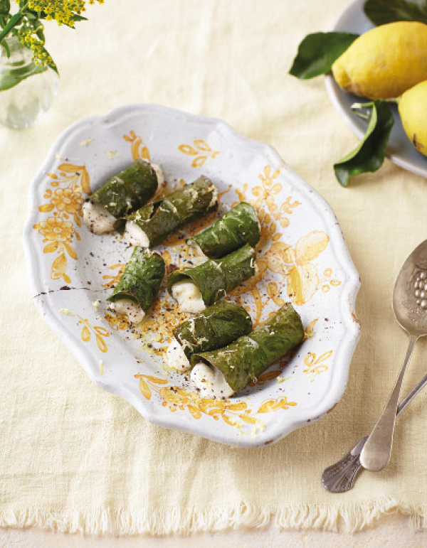 Als voorproefje delen we het recept voor mozzarella in citroenblad. Ursula Ferrigno: ‘Ik gebruik altijd graag de bladeren van de geurige Amalfi-citroenbomen. Misschien heb je zelf wel een citroenboom in je tuin staan of ga anders eens naar je groenteboer en vraag of ze soms een kistje van die overheerlijke Amalfi citroenen hebben staan met de blaadjes er nog aan.