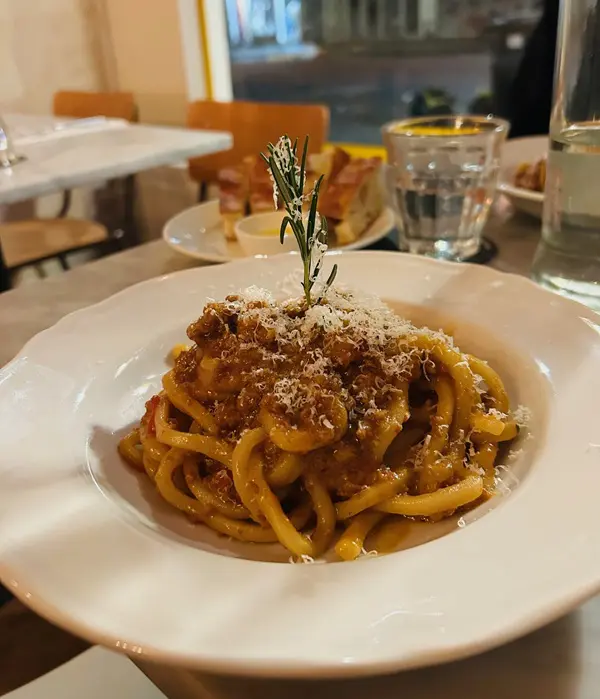 Je denkt nu wellicht dat ik na al die pasta ’s avonds geen trek meer heb, maar niets is minder waar. Ik geniet van een flink bord pici al sugo di salsiaccia bij Fiaschetteria Pistoia op de Albert Cuyp, schuin tegenover de plek waar ik ooit woonde en in 2010 de eerste blogs voor Ciao tutti schreef, niet wetende dat dat zestien jaar later zou leiden tot een juryplek bij deze verrukkelijke wedstrijd…’