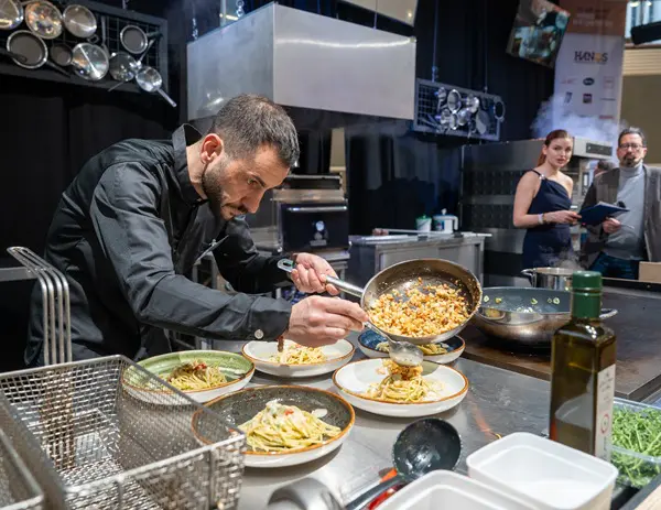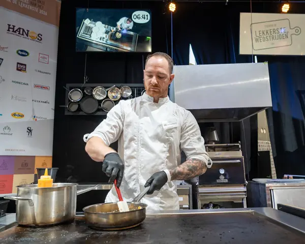 Op 13 januari is het zover. Acht chefs nemen het tegen elkaar op tijdens het NK Lekkerste Pasta op de Horecava in de RAI in Amsterdam. Ze moeten ter plaatse, op het podium, binnen tien minuten vijf identieke creaties maken, die door de vakjury worden geproefd en beoordeeld.