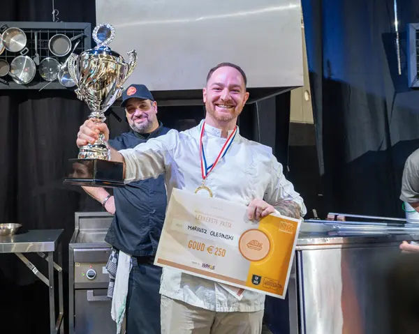Ook tijdens het NK Lekkerste Pasta in 2025 nam Mariusz de gouden medaille mee naar huis. Dit jaar is hij naar eigen zeggen echter nog trotser, omdat het niveau van de wedstrijd een stuk hoger ligt dan vorig jaar. En stiekem ook ‘omdat ik als een van oorsprong Poolse chef opnieuw alle Italianen heb verslagen!’