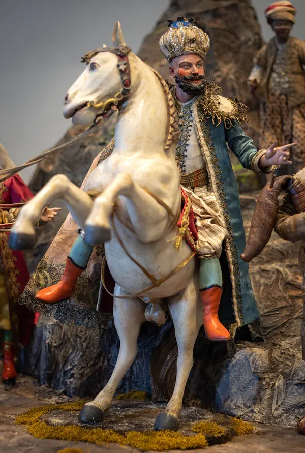 De kerststal verrees in de eetzaal van de monniken, waar hij in 1879 voor het eerst bewonderd werd. Tegenwoordig neemt hij een hele zaal van het Museo di Sant Martino in beslag – en raak je er als bezoeker eigenlijk niet op uitgekeken…