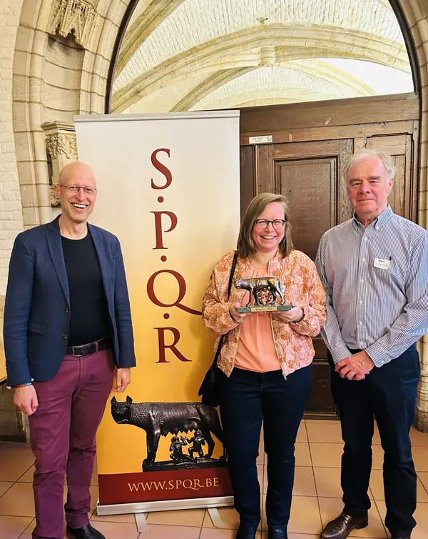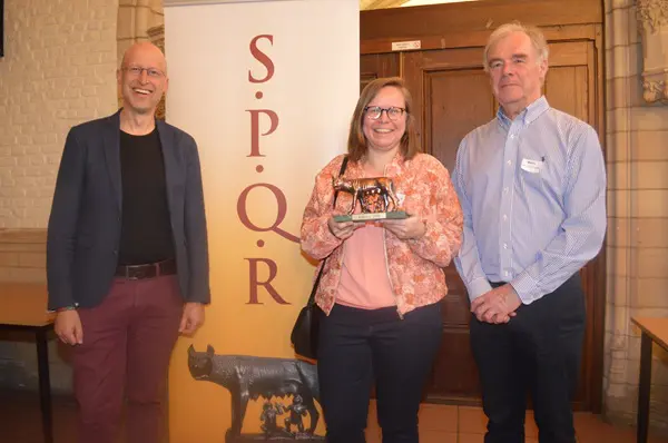 Saskia mocht dit jaar de Romulusprijs in ontvangst nemen, uit handen van Bert Cornillie, schepen van Cultuur in Leuven, onder toeziend oog van SPQR-voorzitter Marc Van de Velde en de andere bestuursleden.