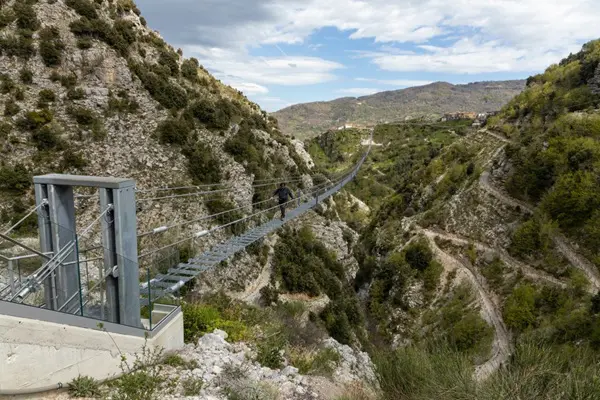 In Italië vind je een groot aantal spectaculaire hangbruggen. In 2024 werd in Umbrië de hoogste Tibetaanse hangbrug van Europa geopend, de Ponte Tibetano di Sellano, waarbij je honderdvijfenzeventig meter boven de vallei ‘zweeft’, met ver beneden je de Vigi-rivier.