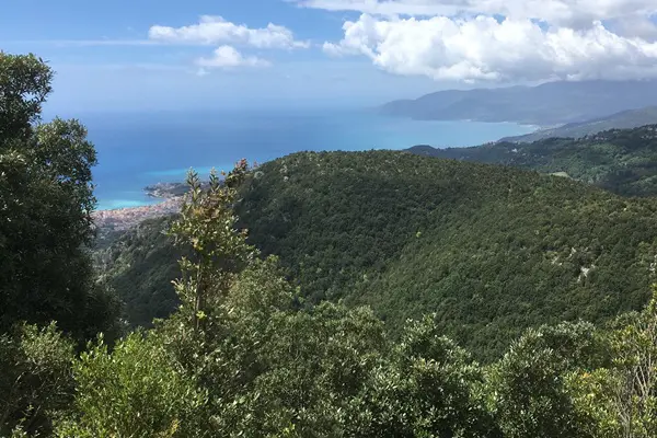 Na vier kilometer kom je langs een picknickplaats, Area attrezzata Valle Strazza, waarna de geleidelijke klim naar de Monte Centaurino begint. Tijdens de klim kun je de Monte Bulgheria (twaalfhonderd meter hoog) bij de kust zien liggen.