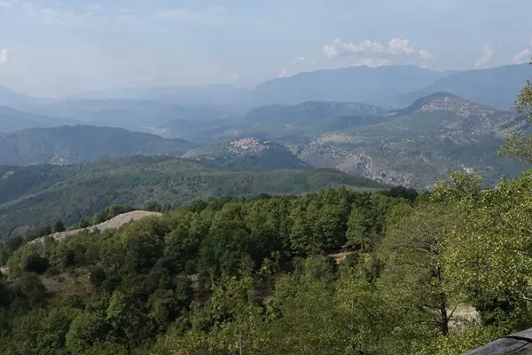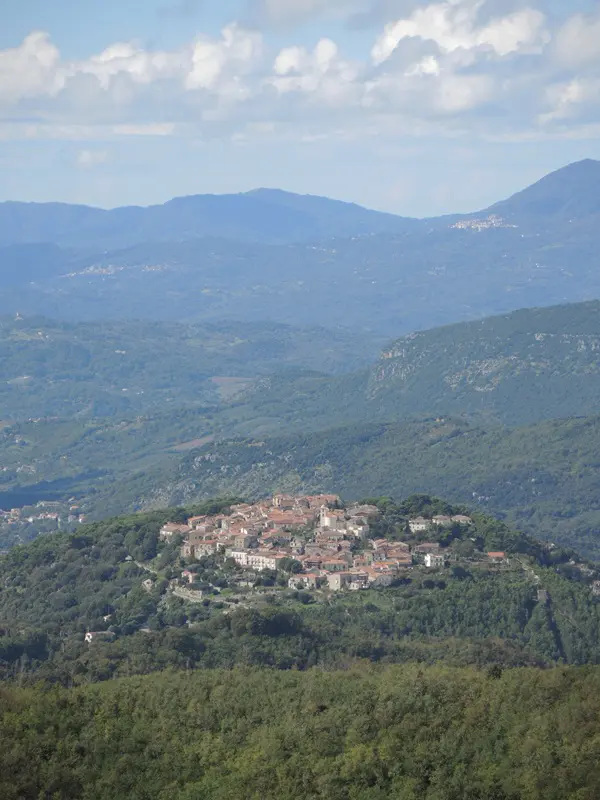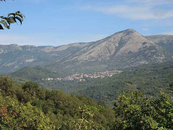 Na het bereiken van de top op zevenhonderdvijfenvijftig meter begint de afdaling richting Rofrano en het vlakbij gelegen Alfano. Voor je zie je de Monte Gelbison liggen. Deze Monte Sacro is de grootste bedevaartsplaats van de Cilento.