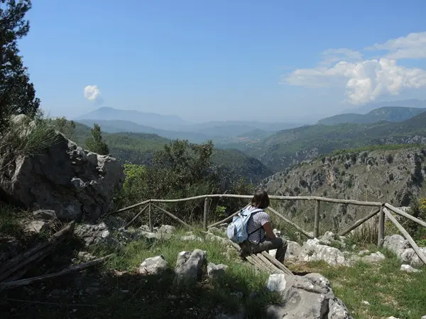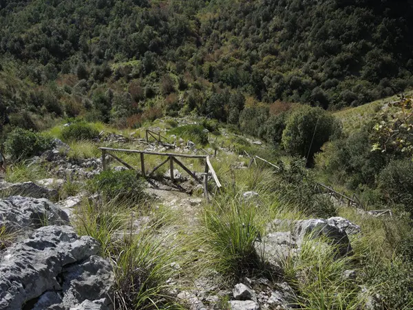 Al meteen bij de start van deze etappe van 9,8 kilometer daal je af naar de WWF-oase van de Grotte del Bussento. In de kloof waar de rivier de Bussento ondergronds gaat, heeft het water een zeven kilometer lange grot uitgesleten. Het is een paradijselijke plek, waar je ook een oude watermolen vindt. Bij de watermolen steek je het riviertje over om je route te vervolgen, richting het dorp Sicilì.