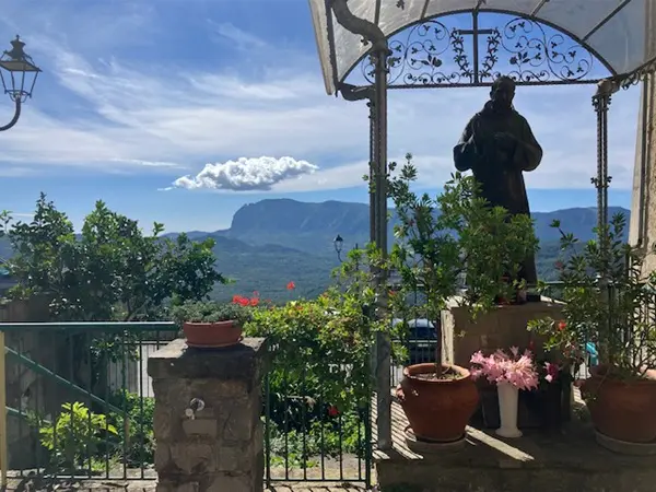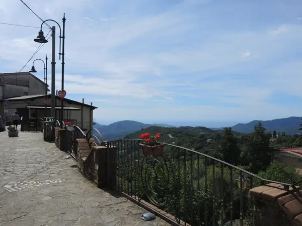 Vanaf het grote plein voor de kerk heb je schitterend uitzicht over de bergen richting de kust en het volgende dorpje Sicilì. Een leuke plek, met buitenterras waar je goed kunt eten is Osteria dei Campari, aan de rand van het dorp.