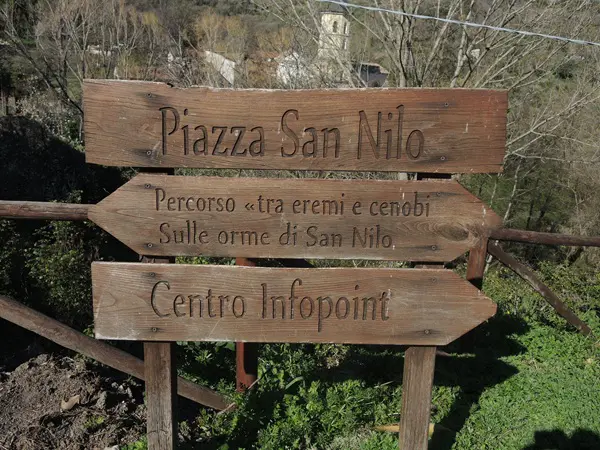 Het klooster staat in het oude centrum van deze kleine borgo. In dit dorp is ook het getuigschrift van de pelgrimstocht verkrijgbaar, bij het informatiepunt San Nilo.