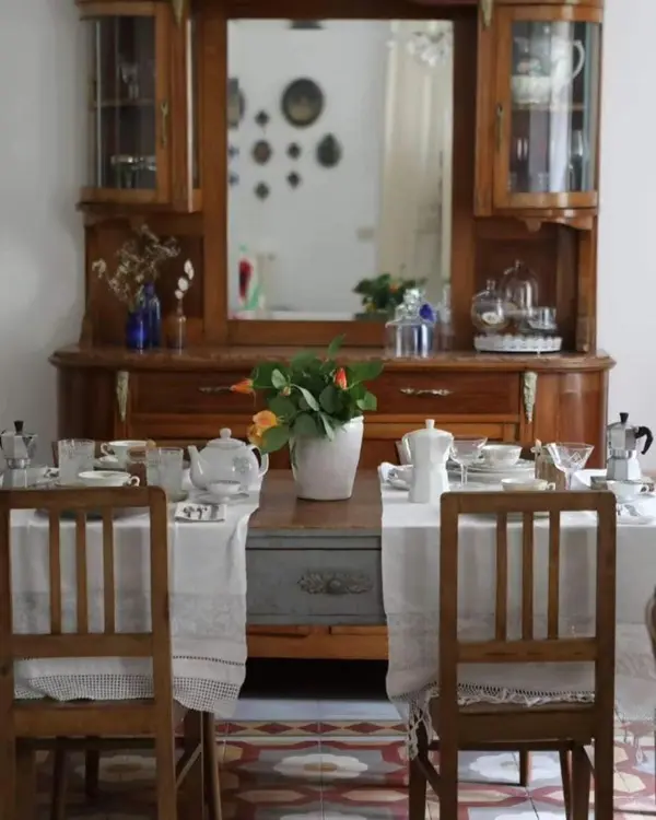 Mocht het te fris zijn, dan serveren Floriana en Damiano het ontbijt in de eetkamer, bij de warmte van de open haard.