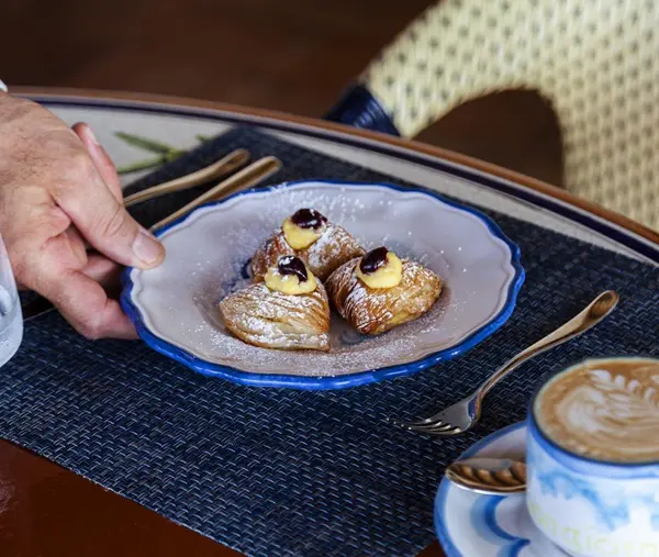 De Napolitanen zijn dol op deze prachtig geschulpte lekkernij van dun bladerdeeg, gevuld met ricotta, gekonfijte citroen- en sinaasappelschil, vanille en een vleugje kaneel. Je eet deze deegschelp het liefst als ‘ie nog lekker warm is, bestrooid met wat poedersuiker. Het is – samen met een cappuccino of caffè – een prima start van de dag, waar je heel wat kilometers op kunt teren.