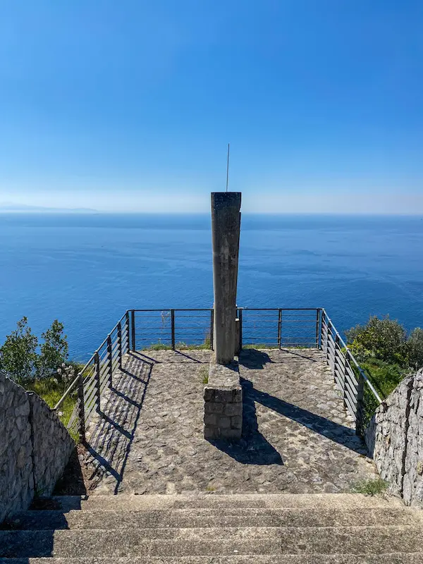 Felicia: ‘Het Belvedere di Paipo bevindt zich in de gemeente Agerola, hoog boven de Amalfikust. Het uitkijkpunt ligt aan de voet van Monte Tre Calli en wordt gemarkeerd door een altaar van de Madonna del Riposo.