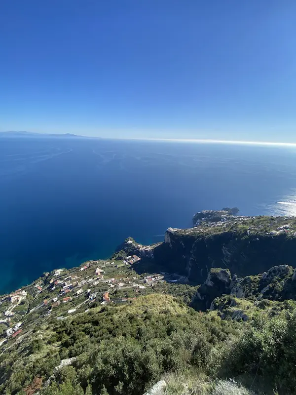 Als je bijna boven bent, kijk je uit over het zuidelijke gedeelte van de Amalfikust en de gehele Golf van Salerno. Op de top word je getrakteerd op een nóg unieker panorama.