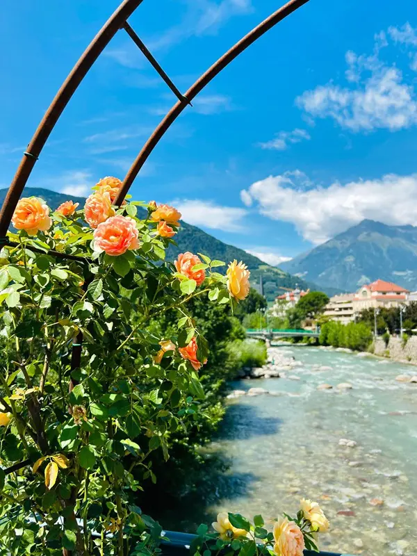 Natuurlijk mocht ook een dagje Merano niet ontbreken, met een wandeling langs de Passirio, over de zomer- en winterpromenade, met als gezelschap het geluid van water, wind en vogels en de geur van rozen.