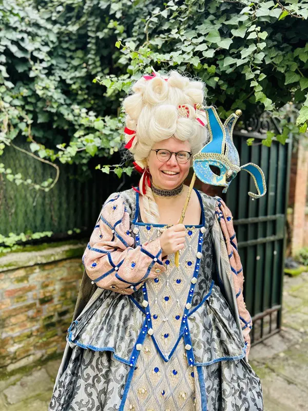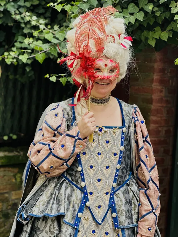 Na dit heerlijke teamweekend reisde Saskia naar Venetië, met name om in de voetsporen te treden van Aldo Manuzio, die de hoofdrol zal spelen in haar nieuwe boek. Ze was net te vroeg voor het Venetiaanse carnaval, maar dankzij Leontine van Venice Dress-Up Experience kon ze toch al even genieten van de kleurrijke kostuums, zoals je in deze post kunt zien.