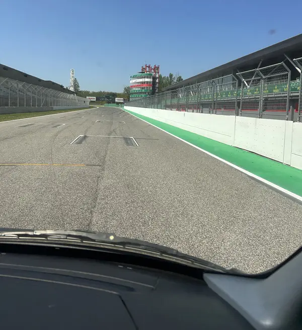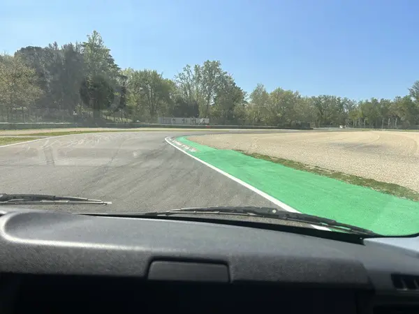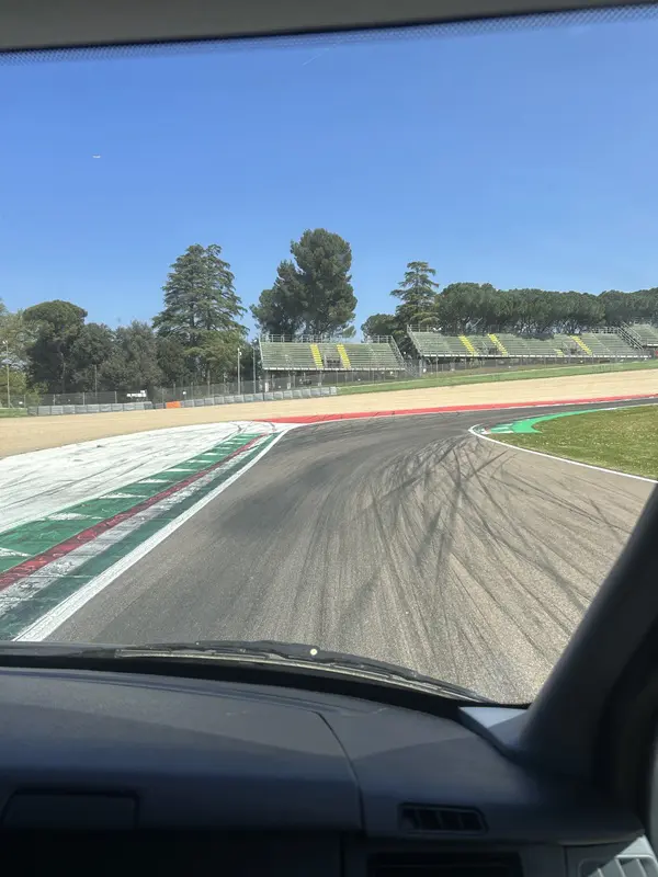 Tijdens het rijden deelt Chiara wat bijzonderheden over het Autodromo Internazionale Enzo e Dino Ferrari. Het is een heuvelachtig circuit met negentien bochten, waarvan negen naar rechts en tien naar links.