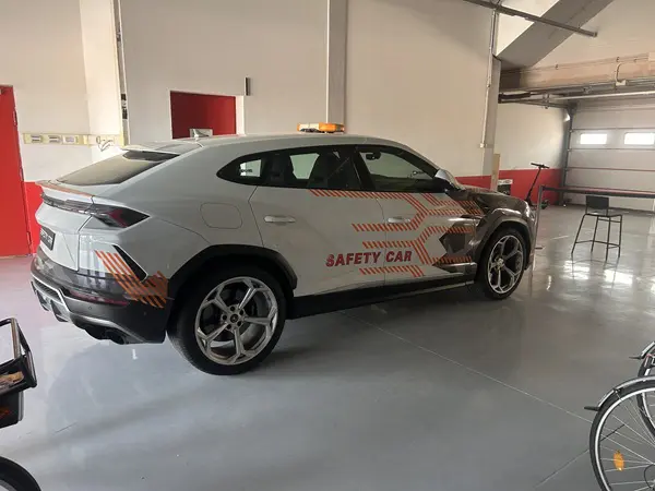 De rijtoer over het circuit zit er op, maar er is meer. We mogen de circuit offices in. We passeren de safety car – een Lamborghini – en ik vertel Chiara dat het mijn droom is om hier een keer een rondje in te rijden, zodat iedereen achter mij moet blijven. Het blijft echter ook vandaag bij dromen…