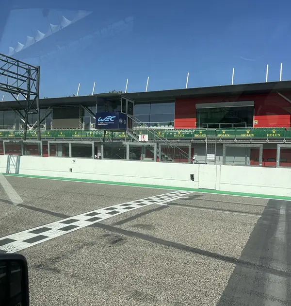 Chiara wacht me op bij het tourbusje en legt uit dat we het circuit op mogen rijden wanneer de lichten op rood staan. De tour wordt namelijk gegeven in de pauzes van de trainingen van de endurance races die deze dagen plaatsvinden. Het rood is dus duidelijk voor de coureurs en betekent dat er niet geracet wordt. Andiamo!