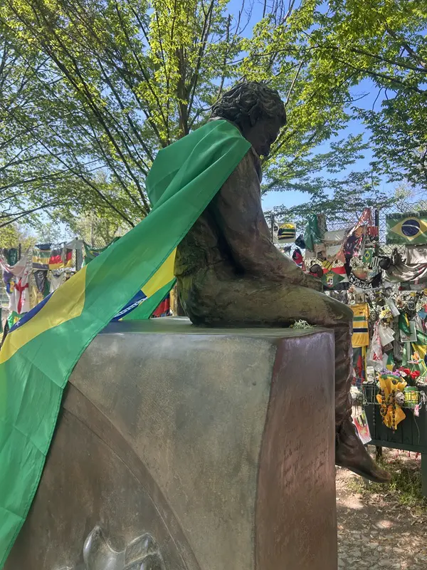 In dit aangrenzende park staat het imposante monument voor Senna dat meer dan dertig jaar na dato nog altijd een ware bedevaartplek voor racefans is.