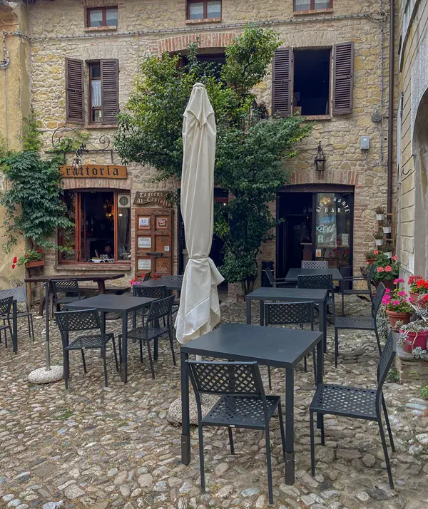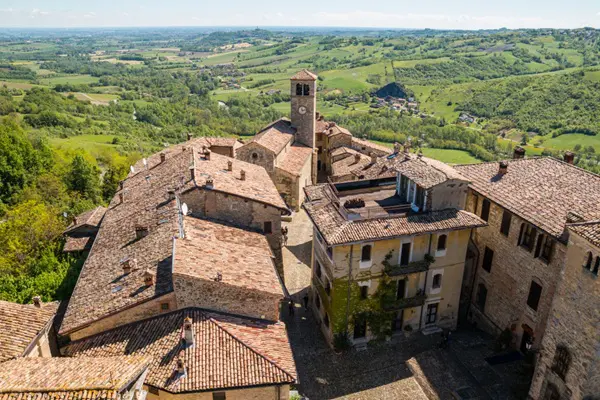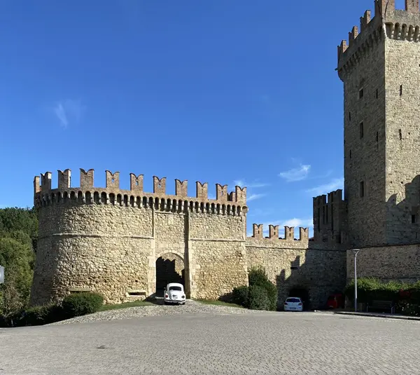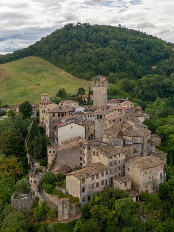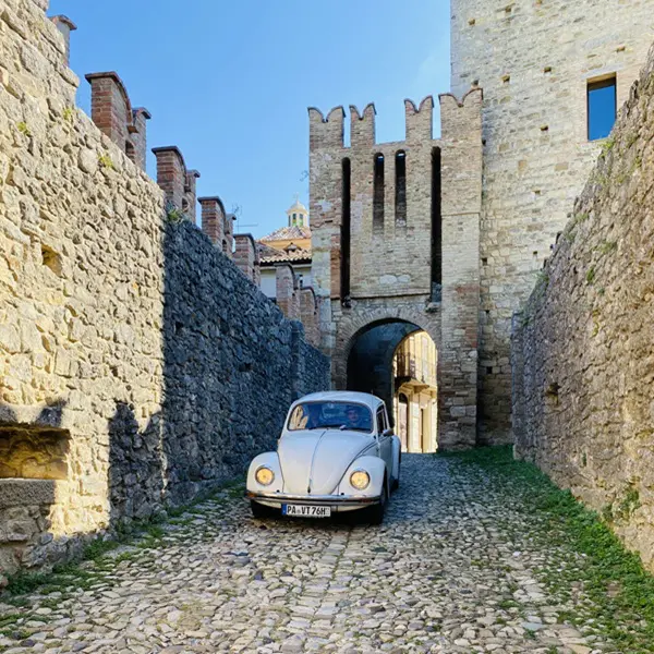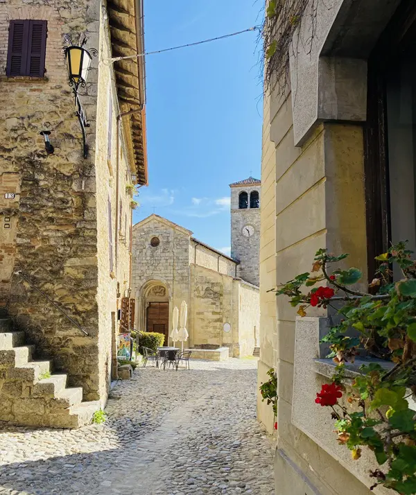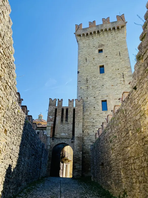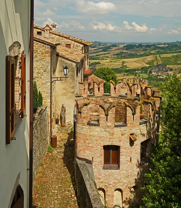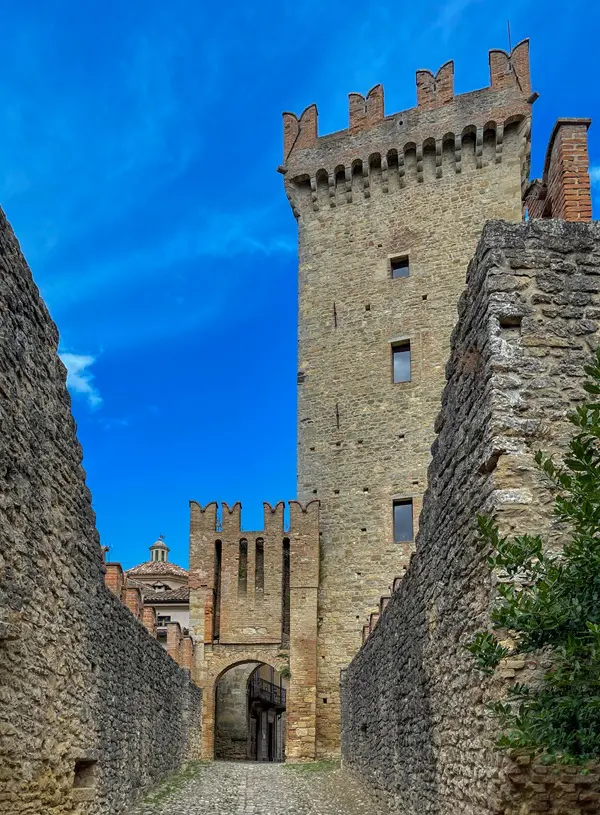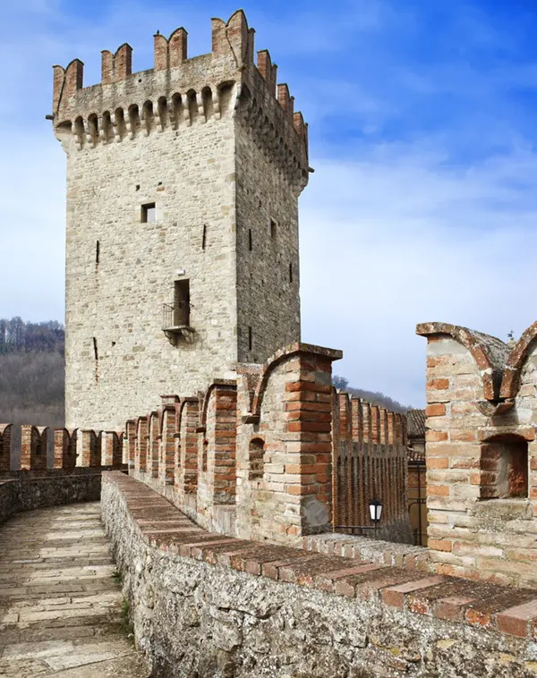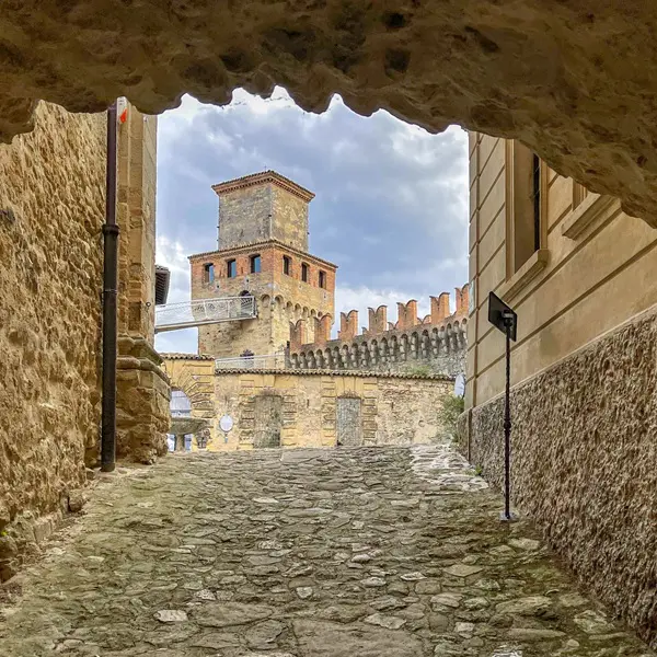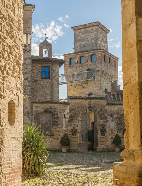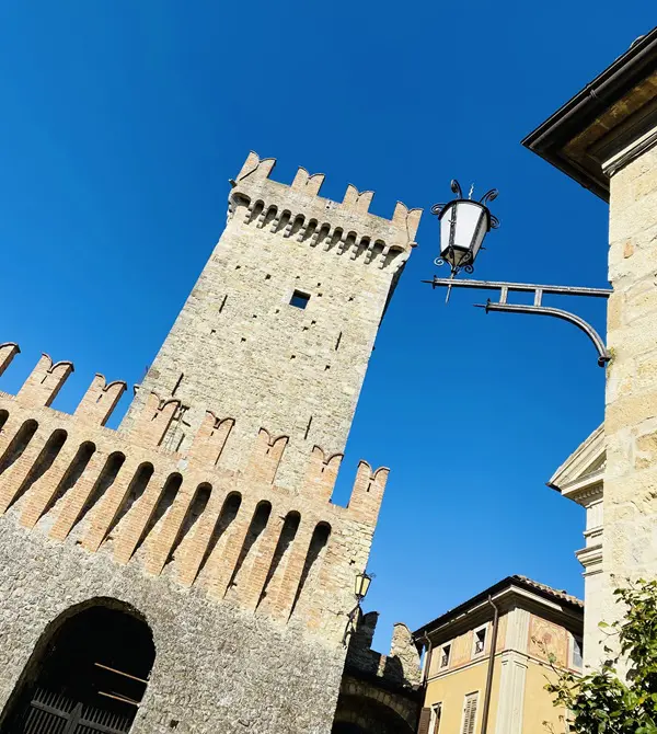 Je betreedt Vigoleno door dezelfde poort die door de eeuwen heen soldaten, ridders en pelgrims heeft zien passeren. In de schaduw van de enorme toren word je betoverd door de aanblik van de imposante gekanteelde muren die het dorp omringen.