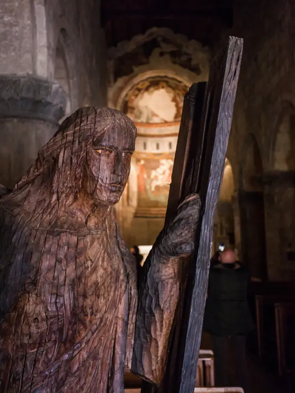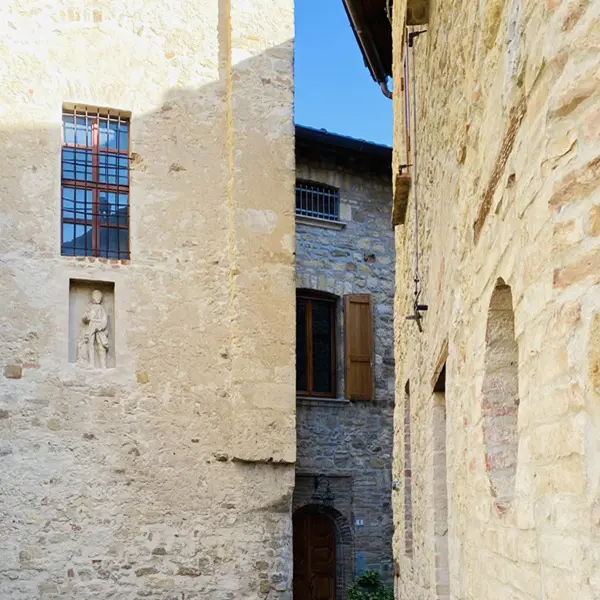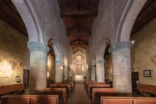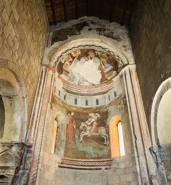 Vanaf de fontein wandel je naar de twaalfde-eeuwse Pieve di San Giorgio, een perfect voorbeeld van romaanse architectuur.