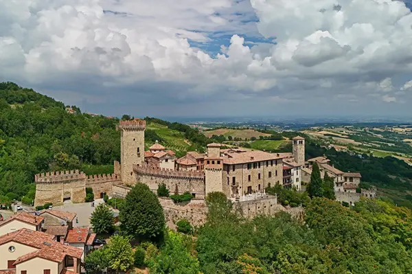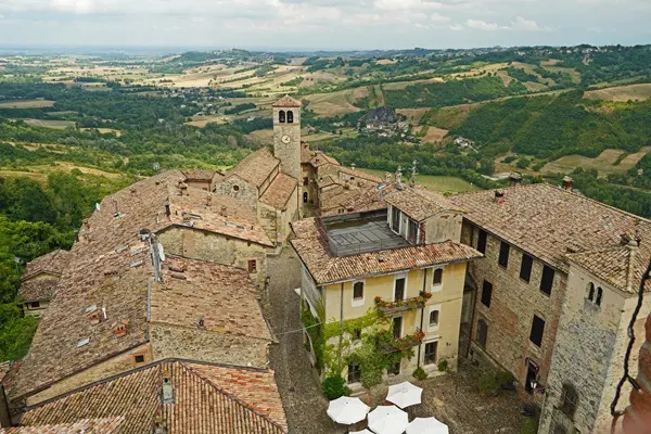 Vigoleno ligt op de top van een heuvel van ongeveer driehonderdvijftig meter hoog, op een strategische (en dus ook panoramische) locatie boven de vallei van de Stirone.