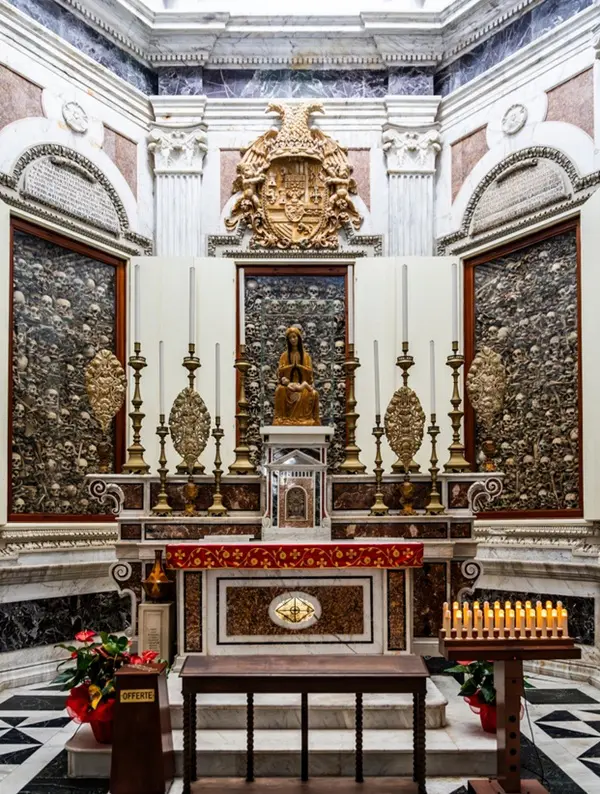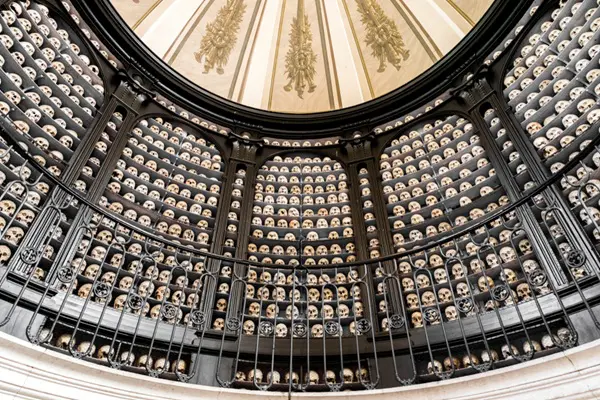 Meer dan tweeduizend schedels staren je aan. Ze behoorden vooral toe aan de Napolitanen die het leven lieten tijdens de grote pestuitbraak van 1656 en aan arme inwoners van de stad, voor wie de familie geen graf kon betalen.