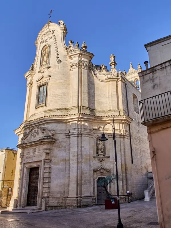 Deze barokke kerk ligt net buiten de iconische Sassi van Matera. Je herkent hem meteen aan de talrijke schedels, skeletten en andere decoraties die verband houden met de dood.