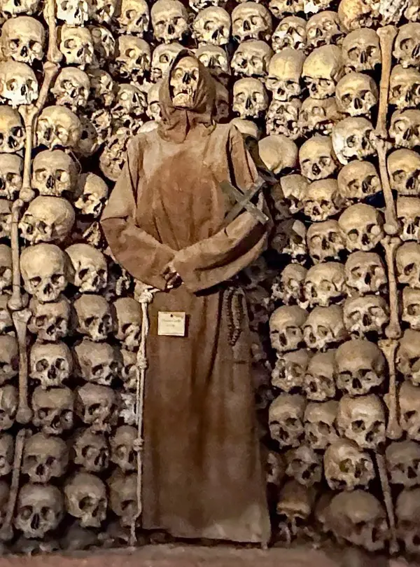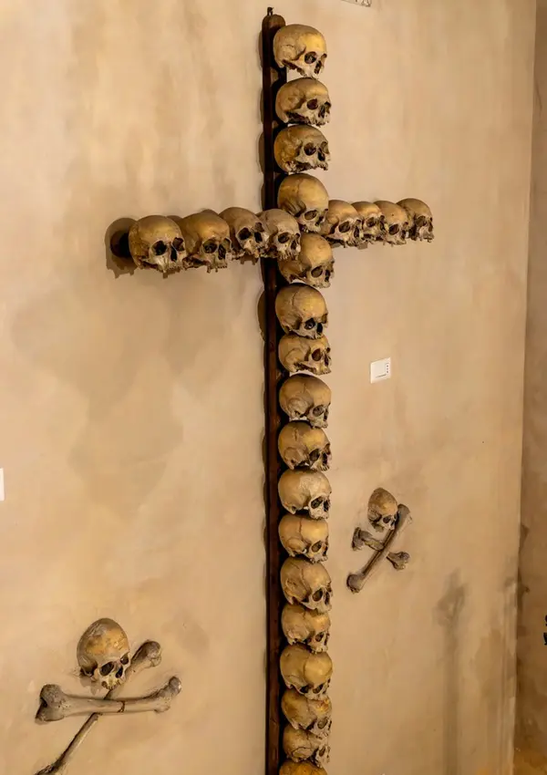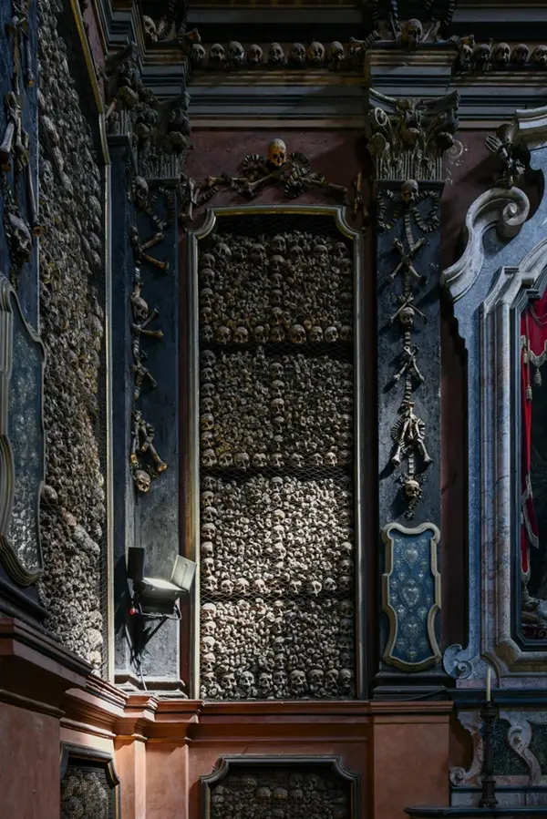 Tussen 1552 en 1896 werden meer dan achtduizend skeletten bijgezet in de ondergrondse grafruimte of knekelkerk, zodat letterlijk alles wat je tegenwoordig in de crypte ziet – tot en met de decoraties en de lampen – bestaat uit botten en schedels.