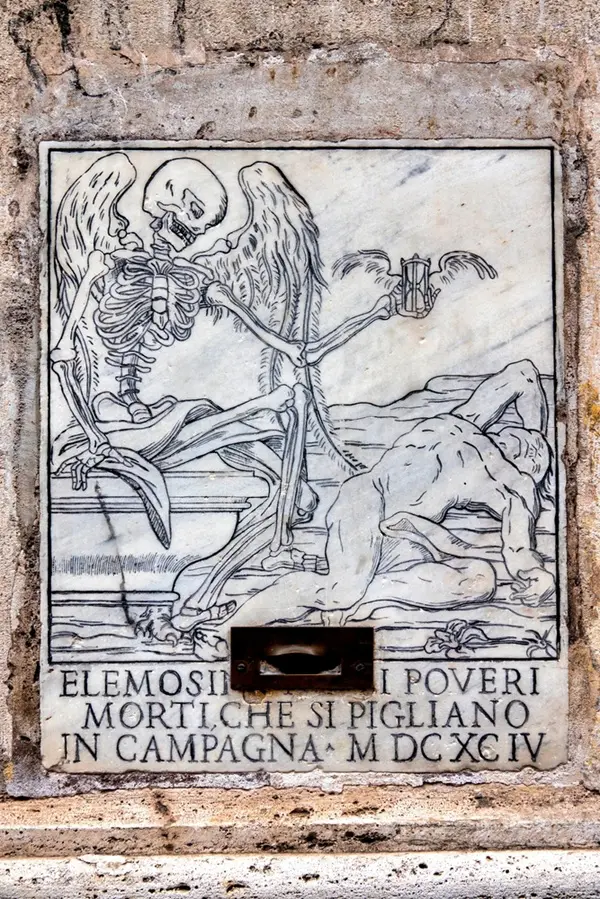 Deze kerk aan de Via Giulia ontfermde zich vanaf 1573 over de anonieme doden van Rome: de lijken die men in vroeger eeuwen nog wel eens van straat, uit de goot of uit de Tiber viste.