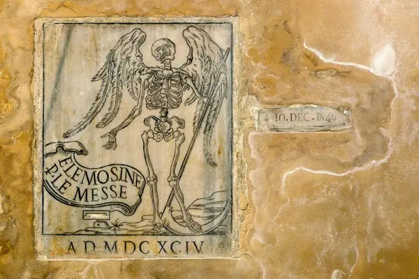 Onderstaand skelet is te vinden in de Santa Maria del Popolo: