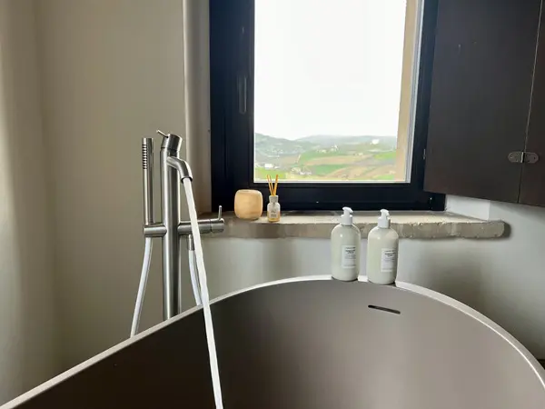 De tenten zijn uitgerust met airco, terwijl een schuifraam prachtig uitzicht over de wijngaard en de omgeving biedt.