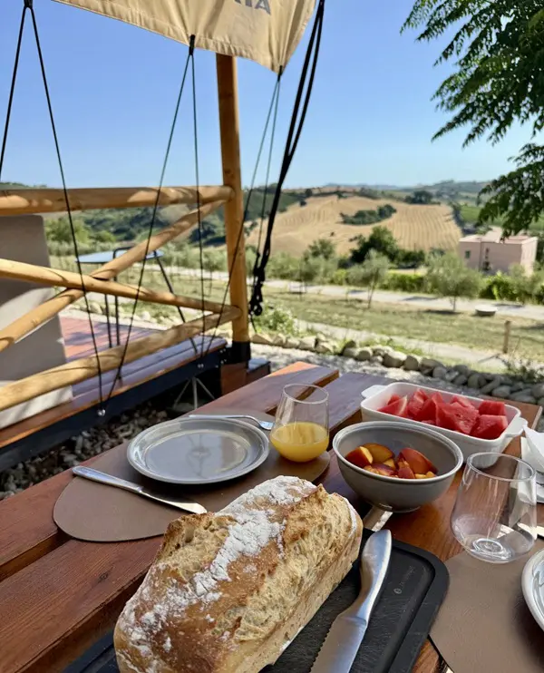 Hier openden ze vorig jaar Agriturismo Brezza di Sera, met een eigen wijngaard, een olijfboomgaard, twee truffelbossen, een groentetuin en een fruitboomgaard. Een plek met schilderachtige vergezichten, waar je helemaal tot rust komt en je je meteen thuis voelt.