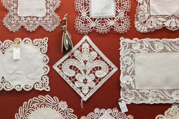 Het kant van Offida met de fijne weefsels, speelse lintmotieven en het delicate netwerk van vlechtjes laat een kunstvorm zien die al vroeg een bijzondere plek heeft veroverd binnen de Europese decoratieve kunsten.