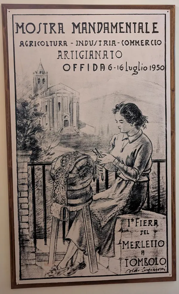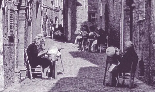 Het oudste schriftelijke bewijs van Offida’s kantproductie dateert uit 1511: een schenking van kant door de gemeente aan de kerk van de Croce Santa, om een gelofte in te lossen na het einde van de pest van 1507.