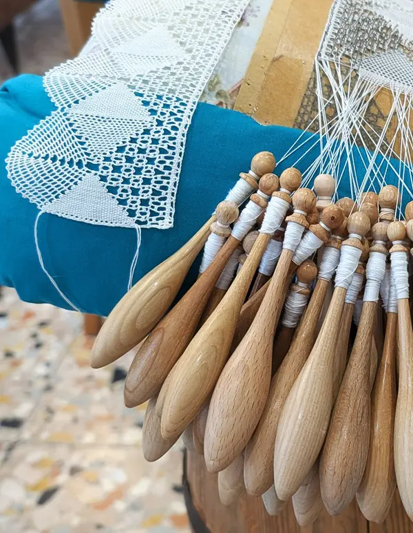 Tijdens gesprekken met inwoners en wandelingen door de smalle middeleeuwse straatjes voelde ze hoe geschiedenis, tradities en het moderne leven in Offida moeiteloos in elkaar overvloeien. In deze blog deelt ze haar ontdekkingen over een van de geliefdste ambachten van het dorp: Il merletto a tombolo, het traditionele kantklossen van Offida.
