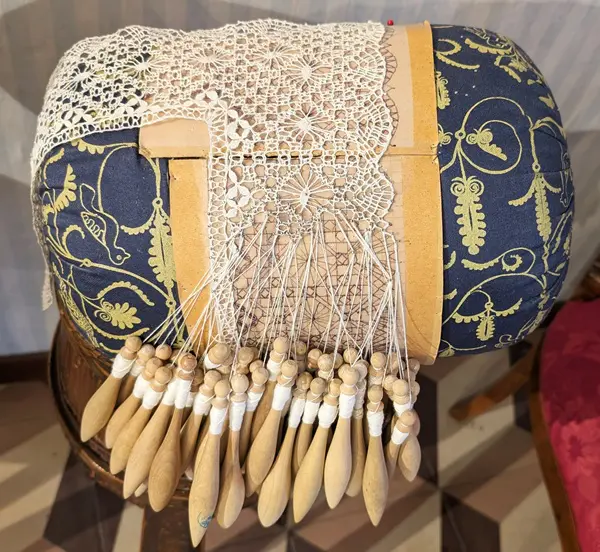 Vroeger leerden meisjes het kantklossen uit noodzaak, vooral voor hun toekomstige bruidsschat. Nu proberen wij de traditie levend te houden, maar dat is niet altijd eenvoudig. De moderne wereld is snel, handwerk vraagt geduld.’