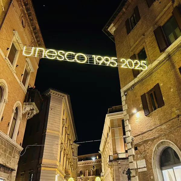 De straten van Siena worden dit jaar verlicht door gouden en zilveren sfere, bollen. Saskia is dit weekend in Siena voor de Mercato nel Campo en deelde al wat mooie beelden via Instagram Stories, met dit weekend nog meer sfeervolle plaatjes uit Siena.