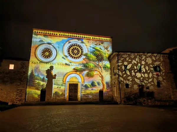 Een kerststal van licht in Assisi
