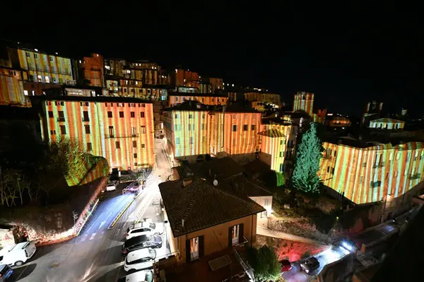 In Perugia schitteren dit jaar lochtkunstwerken naar ontwerp van Mimmo Paladino, die zijn gemaakt door MarianoLight uit Puglia.
