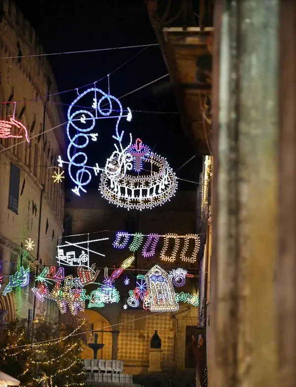 Catania pakt mooi uit voor kerst, met een kerstboom vol lichtjes op het Piazza Università en veel andere sprankelende lichtjes in de Via Etnea en omstreken. De boom is maar liefst tien meter hoog en omvat meer dan driehonderd meter aan ledlichtjes (die dit jaar vanwege de energiecrisis om elf uur ’s avonds worden gedoofd).