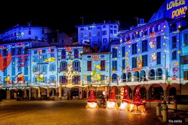Dit dorpje aan het Lago d’Iseo mag zich het hele jaar door al een van de mooiste dorpjes van Italië noemen, maar met kerst is het nog mooier dan anders. Elke avond tot 6 januari is op het Piazza 13 Martiri een verhaal te zien van de bekroonde kunstenaar Torsten Schrank – beroemd van Netflix’ Klaus.