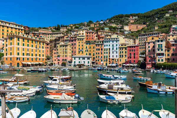 Met de hoge smalle huizen in alle kleuren van de regenboog en de pittoreske haven waar houten boten dobberen op de golven, is Camogli misschien wel het sfeervolste plaatsje aan de Golfo Paradiso, een inderdaad paradijselijk stukje kust.