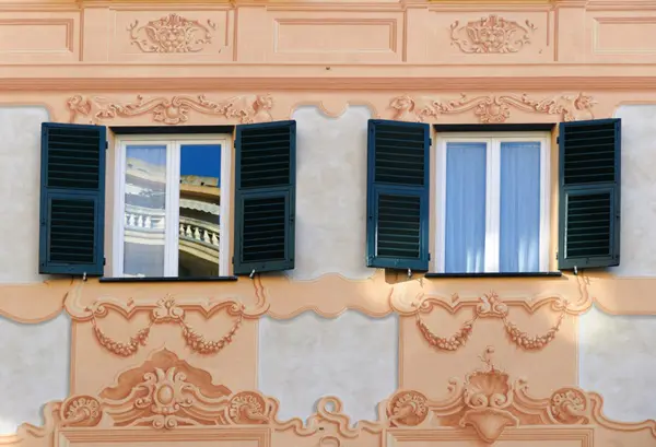 Vroeger werd er in de republiek Genua belasting geheven op het aantal ramen – en dus werd het aantal ramen beperkt. Om de gebouwen toch een symmetrisch aanzicht te geven, werden de ramen dan maar op de gevel geschilderd.