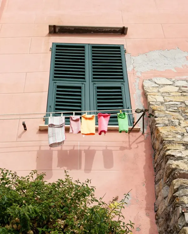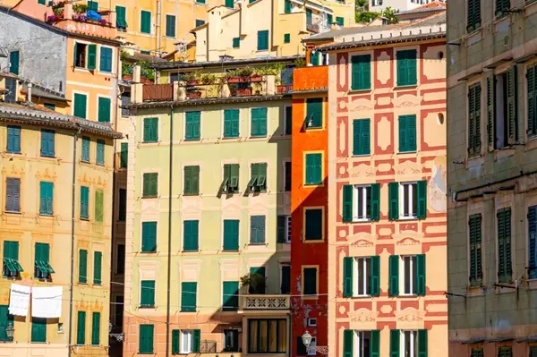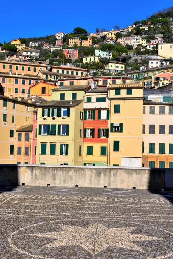 Behalve de haven heeft Camogli een mooie middeleeuwse dorpskern met een wirwar van smalle straatjes en heel veel trappen. Als je goed omhoog kijkt, zie je opvallend veel huizen met geschilderde ramen op de gevels.