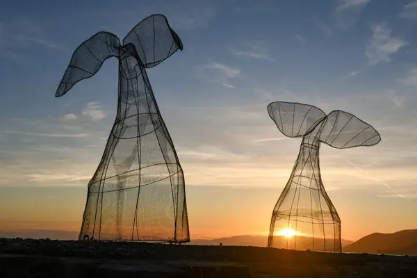 Dan steken ook de twee walvisstaarten van Elisa Gandelli mooi af tegen de lucht. Met deze installatie symboliseert de kunstenares de diepe band tussen de zee en de stad.