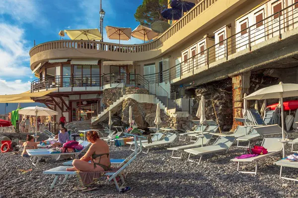 Vooral het (kiezel)strand is zeer fotogeniek, mede vanwege de uitloper waarop de zonnig geel geschilderde Basilica di Santa Maria Assunta prijkt, met de kenmerkende klokkentoren die bijna met de voeten in zee staat.
