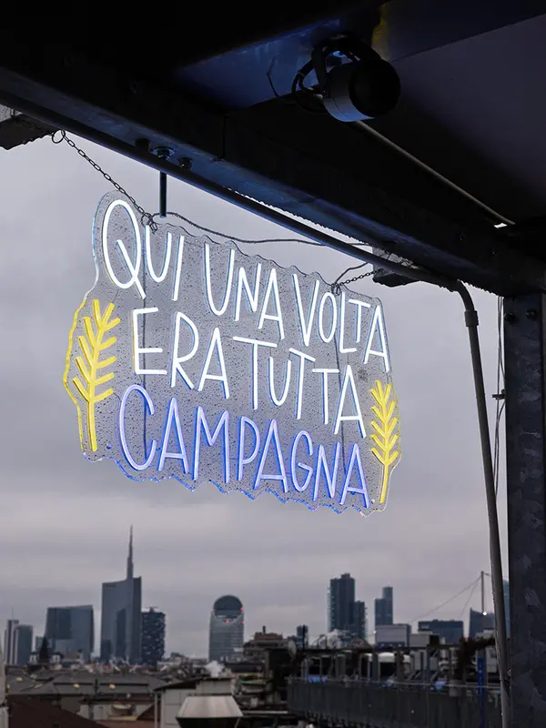 Een ander kunstwerk dat het goed doet zijn de neonlichten van Insulti Luminosi. Leuke woordgrappen met Italiaanse uitdrukkingen die op lokale ‘helden’ ingaan. Zoals Madonnina che vista, dat refereert aan de gouden Madonnina die op het hoogste punt van de Duomo prijkt en de uitspraak Madonna che vista! (vrij vertaald: Wauw, wat een uitzicht!).