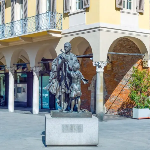 Je zou het niet zeggen als je hem zo gemoedelijk op het bankje ziet zitten, maar deze versie van Verdi – van de hand van Sergio Brizzolesi – weegt bijna vierhonderd kilo. Als muziekliefhebber moet je eigenlijk ook een bezoekje brengen aan het Casa della Musica, dat eveneens aan het Piazzale San Francesco te vinden is.