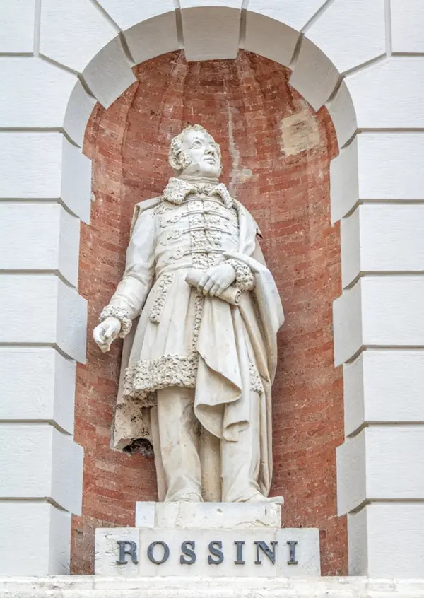 Pesaro is ook de geboorteplaats van de beroemde componist Gioacchino Rossini (1792-1868). Het conservatorium van Pesaro – met in de binnentuin een groots standbeeld van de componist – is naar deze getalenteerde musicus genoemd, maar ook elders in Pesaro loop je Rossini tegen het lijf.
